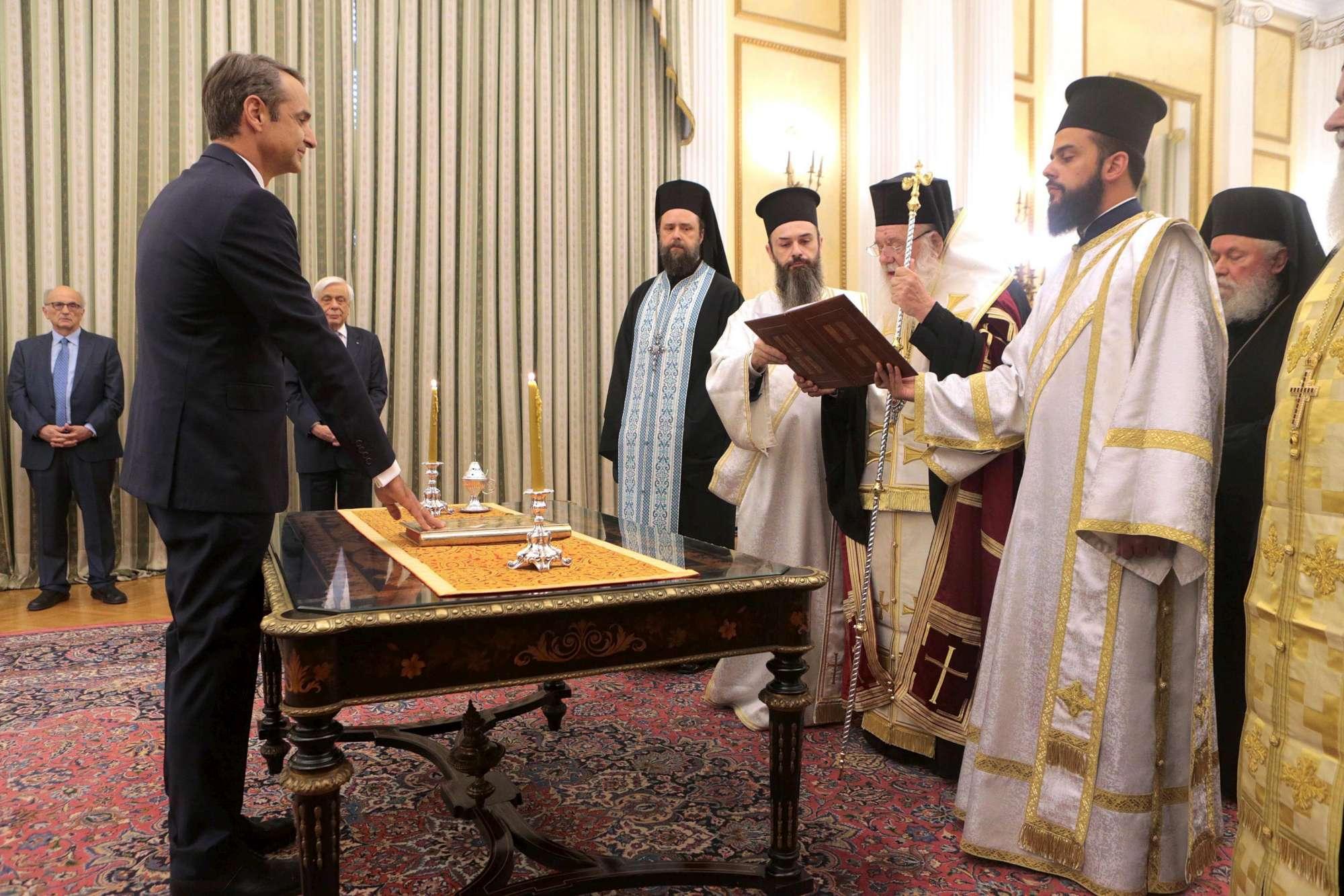 Micotakis u paraqit në presidencë i shoqëruar nga bashkëshortja dhe tre fëmijët ku bëri betimin si kreu i ri i qeverisë .