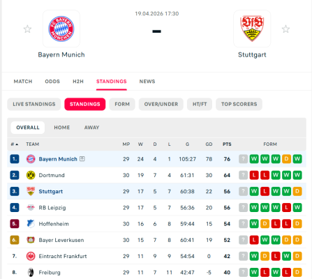 Praktikisht mund të thuhet se Bayern Munich është shpallur tashmë kampion, pasi ka 12 pikë diferencë nga Borussia Dortmund kur kanë mbetur edhe 4 javë kampionat, si dhe 48 gola diferencë. Do të duhej vetëm një mrekulli që verdhezinjtë të mos lejonin festën bavareze.