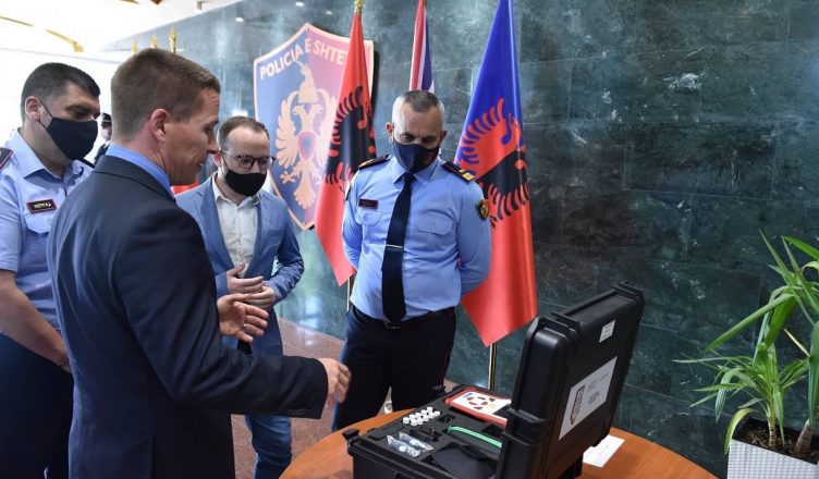Forcat Kufitare të Britanisë së Madhe dhurojnë për Policinë e Shtetit, 3 pajisje për detektimin e lëndëve narkotike dhe të substancave të tjera të rrezikshme.