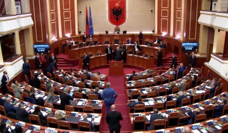 Kryeparlamentarja Elisa Spiropali e përjashtoi nga seanca dhe kërkoi nërprerje të seancës plenare deri në qetësim të situatës./vizionplus.tv