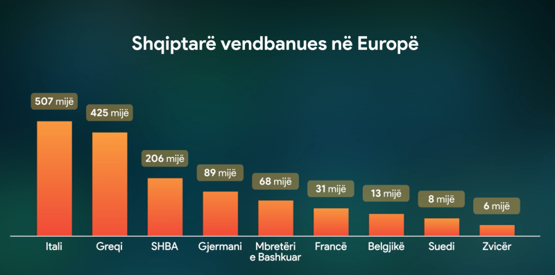 Sipas të dhënave nga INSTAT rezultojnë se janë mbi 2.2 milion shqiptarë që jetojnë në botë prej vitesh. Numri më i madh numërohet në Itali, Greqi dhe SHBA.