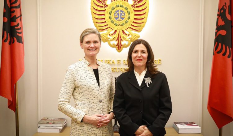 “Sot, e Ngarkuara me Punë Nancy VanHorn përgëzoi Kryetaren e sapoemëruar të Gjykatës Kushtetuese Fiona Papajorgji dhe diskutoi se si mbështetja afatgjatë e Shteteve të Bashkuara për institucionet e zbatimit të ligjit në Shqipëri çon përpara prioritetet e Presidentit Trump: çmontimin e rrjeteve të narkotrafikut dhe krijimin e kushteve të barabarta për bizneset amerikane.