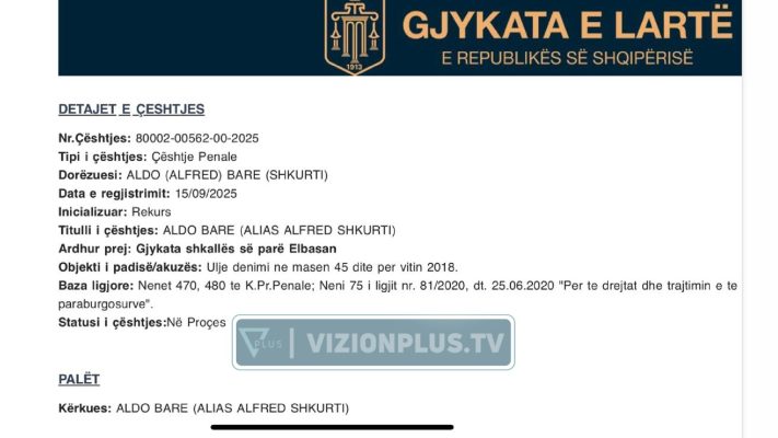 I dënuari me burgim të përjetshëm, Aldo Bare ka dorëzuar një kërkesë zyrtare në Gjykatën e Lartë për uljen e dënimit me 45 ditë, mëson gazetari i Vizion Plus Esido Barkaj.