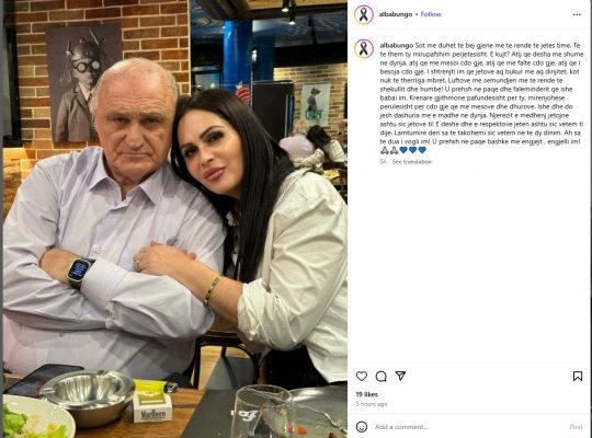 Në mesazhin e saj të ndjerë, Alba shpreh dhimbjen e madhe për humbjen e të atit, duke e cilësuar këtë moment si më të rëndin e jetës së saj.