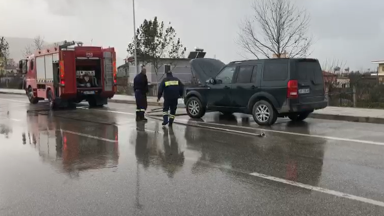 Një automjet i llojit Land Rover ka marrë flakë në ecje në rrugën Transballkanike, pranë Paraburgimit të Vlorës.