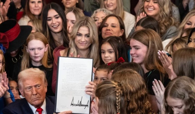 “Përmes këtij urdhri ekzekutiv, lufta kundër femrave në sport merr fund”, tha Presidenti Trump gjatë ceremonisë së nënshkrimit në Shtëpinë e Bardhë ku merrnin pjesë ligjvënës dhe sportiste femra që janë shprehur kundër pjesëmarrjes në sportet e tyre të transgjinorëve, përfshirë ish notaren e famshme Riley Gaines.