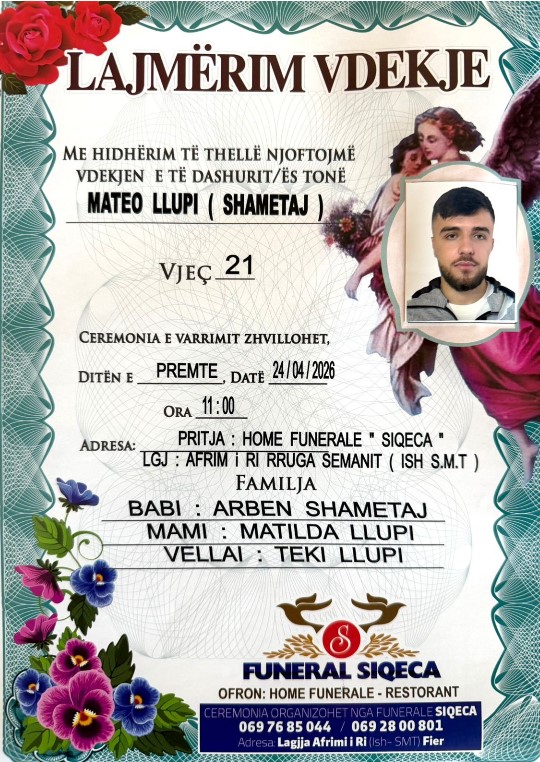 Ndërkohë, trupi i të riut është transportuar drejt Shqipërisë dhe ka mbërritur në qytetin e Fierit, ku familja Llupi ka hapur dyert e mortit. Ceremonia e përcjelljes për në banesën e fundit pritet të zhvillohet ditën e premte.